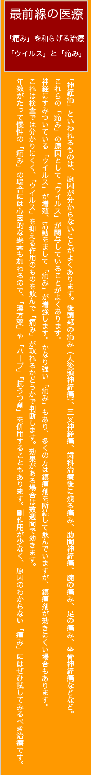 これらの「痛み」の原因として「ウイルス」が関与していることがよくあります。